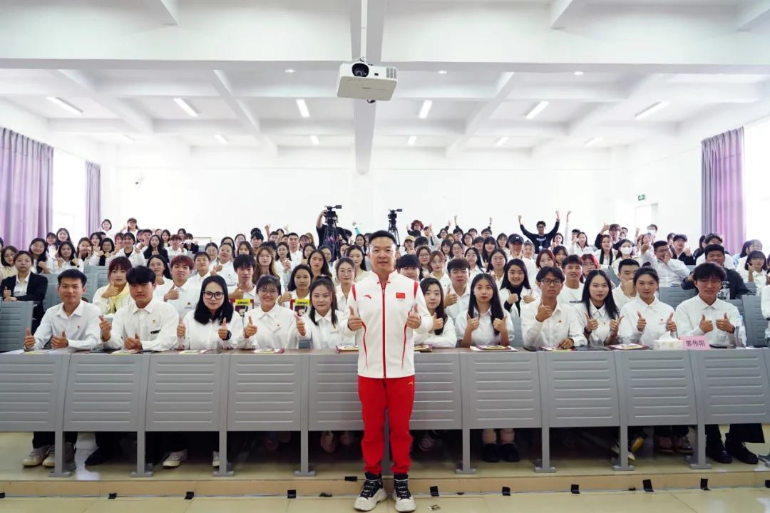 郭伟阳于2001年进入国家体操队,曾获2010年体操世界杯比利时根特站双杠冠军和单杠冠军、2011年东京世界体操锦标赛男子体操团体冠军,并在2012年夺得伦敦奥运会男子体操团体金牌,他也是中国第一个连续三年夺冠的运动员。郭伟阳从自身经历和与体育的独特渊源为师生开展了一场精彩绝伦的讲座,传递了永不言败、永不放弃的正能量,充分展现中国精神、中国力量。