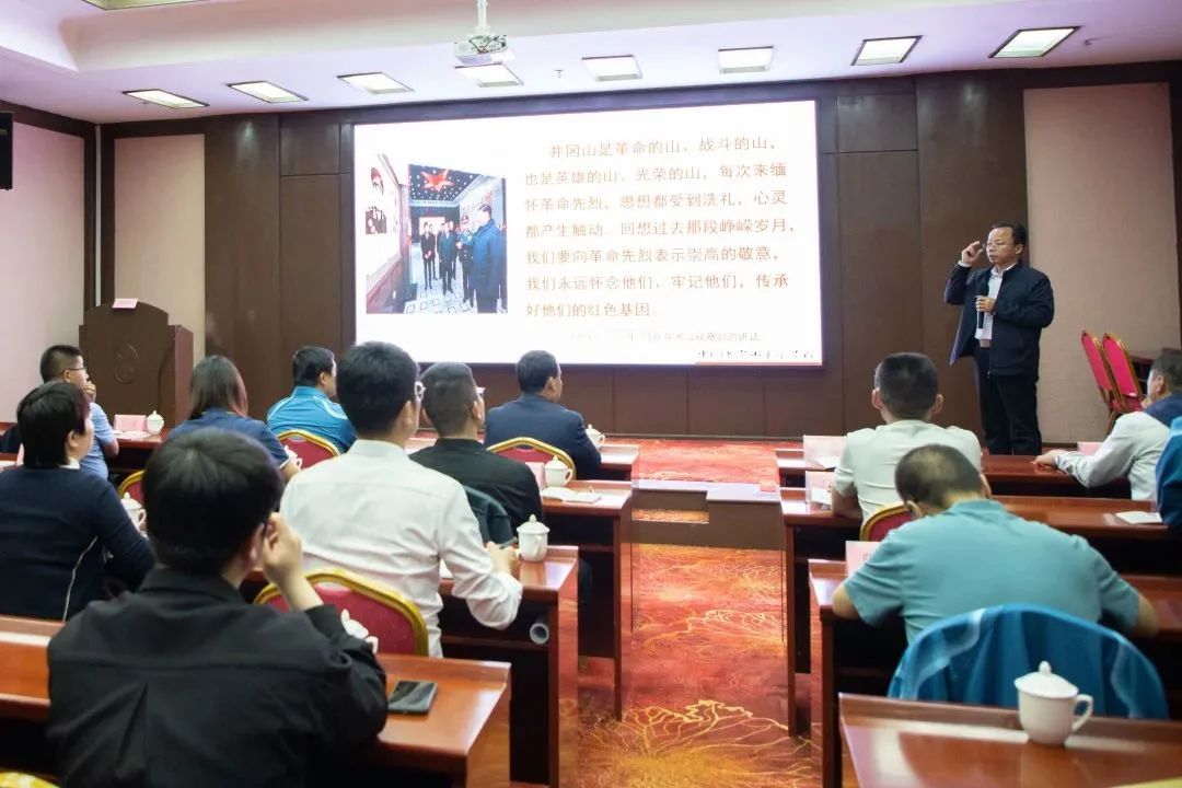 中国井冈山干部学院教学科研部国情教学研究中心主任、党建学教授颜清阳为读书班成员以《深入学习井冈山精神和井冈山斗争》为题开展专题讲座,带领读书班成员重温井冈山斗争的历史、深刻感悟以坚定不移信仰马克思主义为灵魂,以艰苦奋斗、不折不挠为根本,以一切为了群众、一切依靠群众为本质,以实事求是为精髓的井冈山精神内涵。