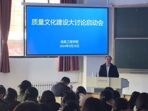 为落实《教育部关于加快建设高水平本科教育全面提高人才培养能力的意见》文件精神,根据《山东华宇工学院关于开展质量文化建设大讨论的通知》要求,kaiyun官方登录入口于3月29日召开质量文化建设大讨论启动会,会议由院长薛河儒主持,学院全体教职工参会。
