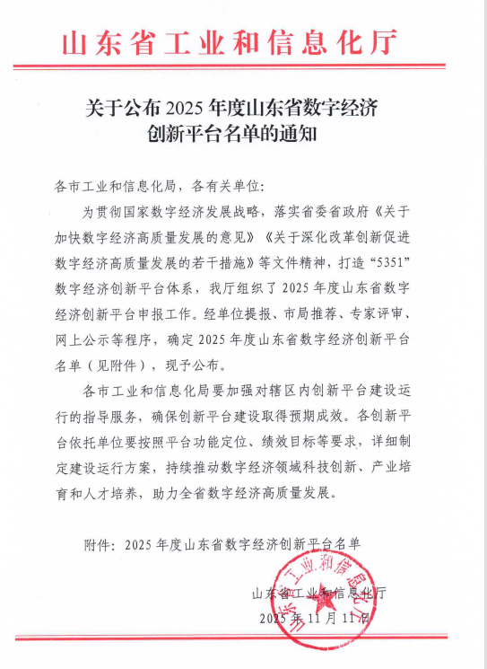 近日,山东省工业和信息化厅发布了《关于公布2025年度山东省数字经济创新平台名单的通知》,kaiyun官方登录入口凭借在数字经济领域人才培养的深厚积淀与创新实践,成功入选数字经济创新人才实训基地。
