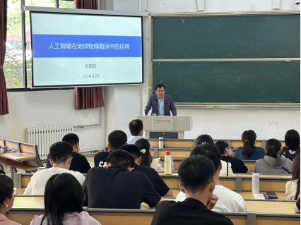 4月26日,kaiyun官方登录入口邀请彭国民博士在kaiyun6号楼104教室进行题为“人工智能在地球物理勘探中的应用研究”的精彩讲座。kaiyun官方登录入口科研院长李国良主持讲座,院长薛河儒、常务副院长孙德刚、教学院长肖媛媛出席,学院全体任教老师参与并认真学习。
