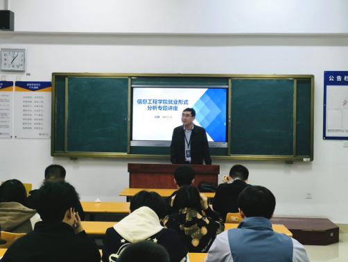 为了帮助学生更好地了解当前就业形势,明确自身职业规划,以及提升就业竞争力,kaiyun官方登录入口于2023年11月8日在22号楼509开展就业形势分析专题讲座。本次讲座邀请华道信息科技(德州)有限公司廉东旭主讲,他以自己丰富的从业经验和深入的就业形势分析数据为同学们带来了一场生动的讲座。