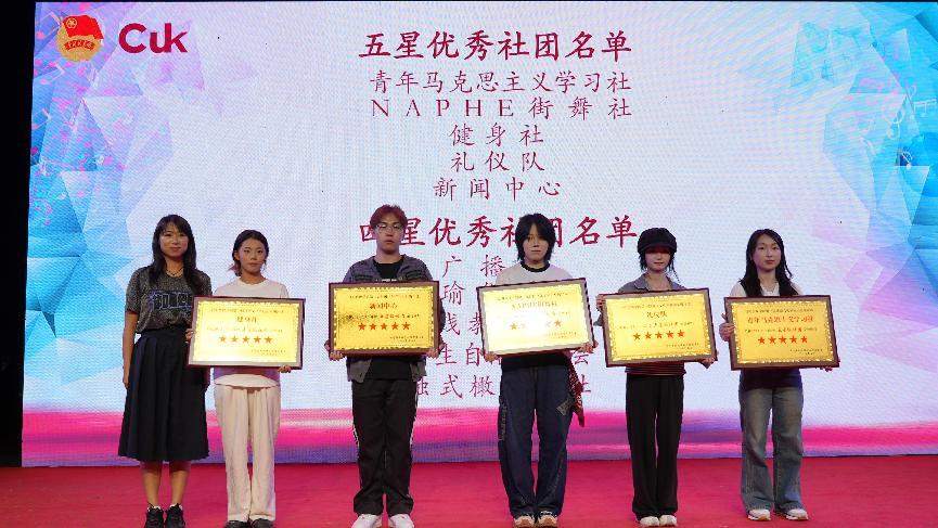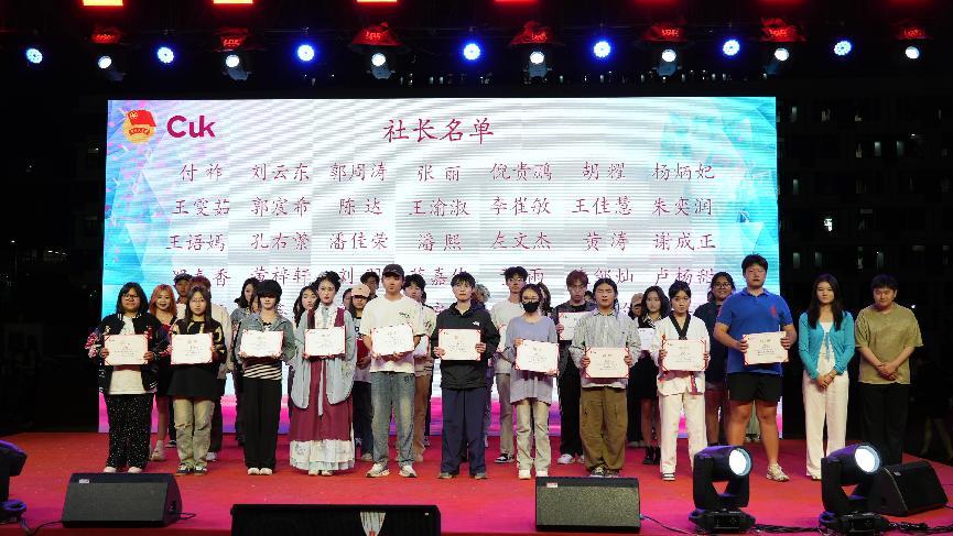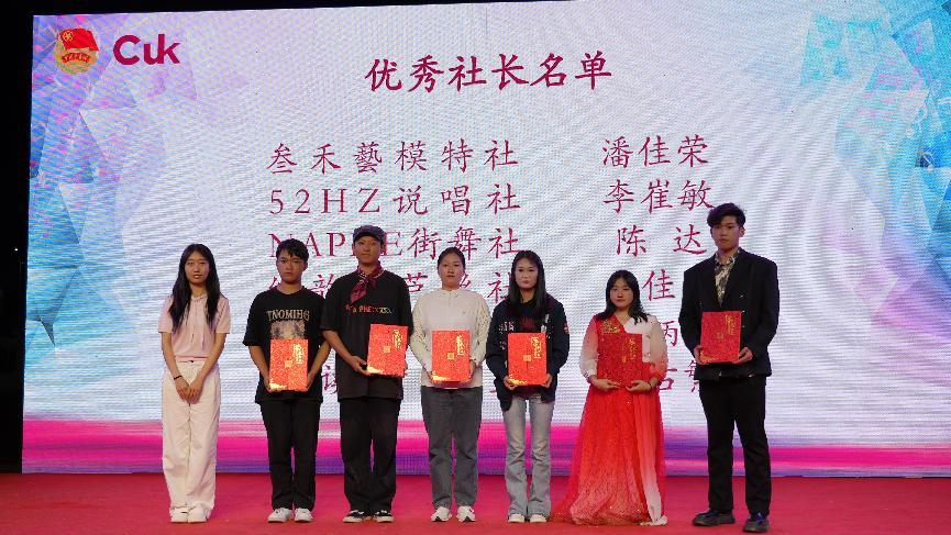 晚会现场还举行了2023 - 2024年度社团评优颁奖典礼。校团委负责人为荣获优秀社长及四星、五星的社团及颁发证书,肯定他们过去一年的出色表现和为校园文化建设作出的积极贡献。获奖社团代表纷纷表示,将以此为动力,继续发挥社团特色,为同学们带来更多优质活动。