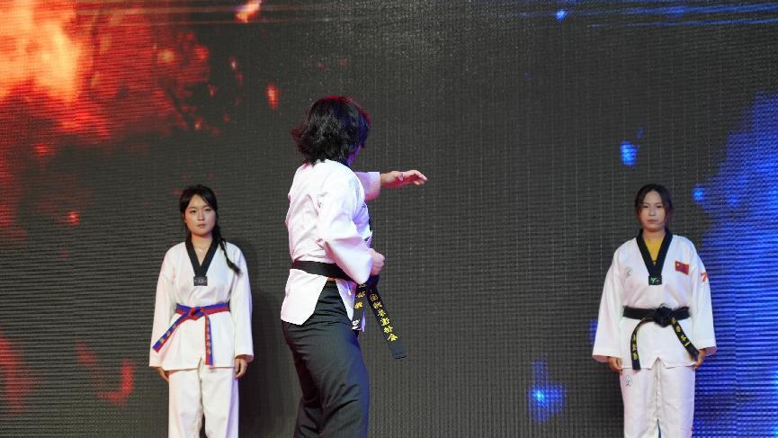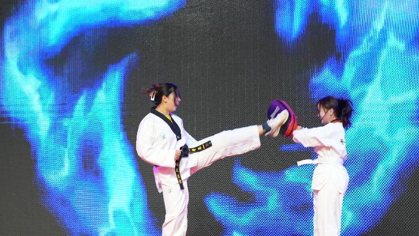 舞台上,充满动感与节奏的舞蹈点燃全场热情,每一个旋转、跳跃都展现出青春的蓬勃朝气,瞬间将现场气氛推向高潮;跆拳道登场,凌厉的侧踢破空有声,一招一式尽显武者风范,展现出力量与美感的完美融合;辩论社的成员们一改赛场锋芒,用深情的朗诵诉说着动人篇章,富有感染力的声音传递着对中华民族的深刻情感,引发全场共鸣。