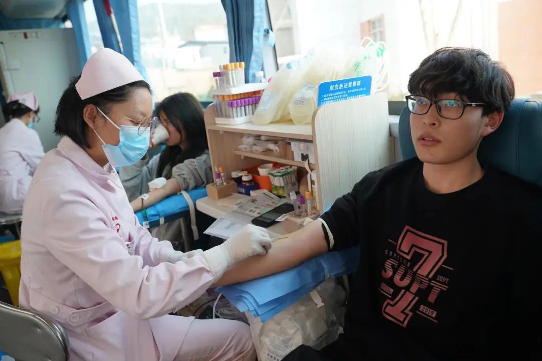 此次活动中,志愿者们协助医护人员维护现场秩序,妥善安置每一个献血的同学,密切关注学生身体状况,补充糖水,恢复体力。无论是医护人员还是志愿者,他们的脸上都洋溢着快乐的笑容,默默地为同学服务。