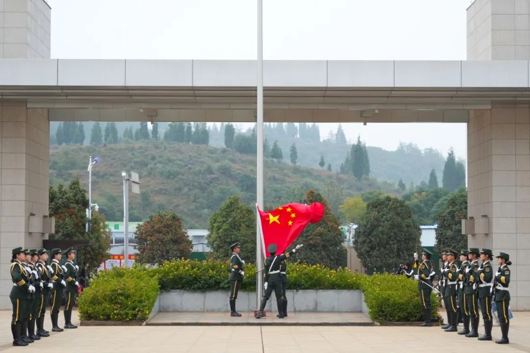 国歌响起,全体在场同学齐唱国歌,歌声坚定响亮。国歌声中,擎旗手将国旗高高扬起,那一抹红色在晨光中格外耀眼。国旗缓缓升起,在微风中舒展,在全场同学的注视下升至顶端。