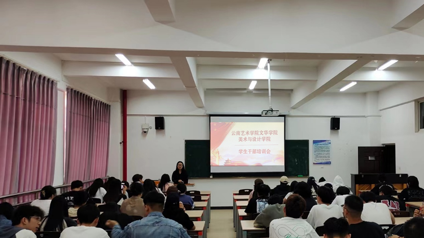 2023年秋季美术与设计学院开展学生会组织工作人员培训。会议由美术与设计学院全体学生干部参加。会前,大家齐唱团歌,加强团员意识教育,增强团组织凝聚力。会上深入学习团章,并严格按照团章做合格优秀的团干。其中十位团干代表结合个人过去一年工作进行反思,并对下一年工作作出了改进规化。相信在本次会后,美术与设计学院学子会更加深刻地认识到学生干部的职责,明确身为学生干部所要秉持的宗旨。
