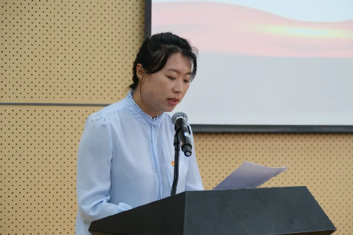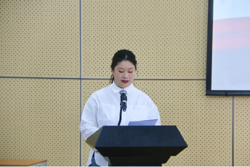 校团委书记韩玉娇宣读《beat365中文官方网站团委关于2024年大学生暑期“三下乡”社会实践团队立项的决定》。